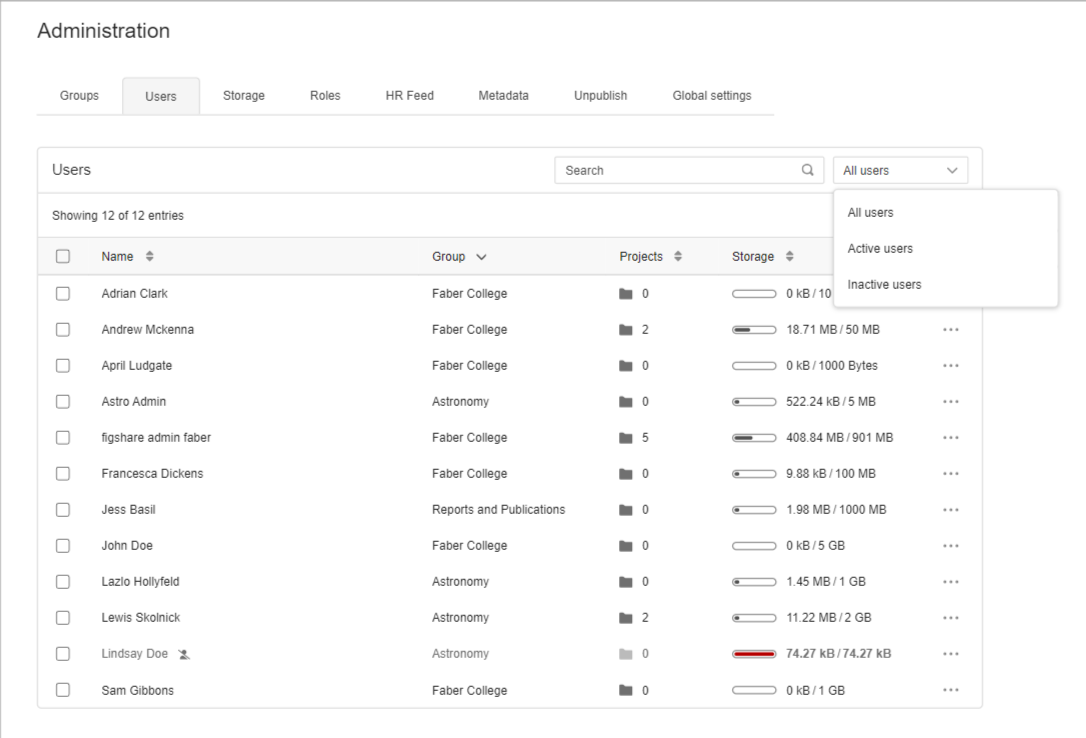 Managing users is a very important aspect of running a Figshare for Institutions repository. Effectively managing users within your portal ensures streamlined and secure management of research outputs which, in turn, enhances the overall efficiency of data handling within your organisation. By maintaining well-organised user access and permissions, administrators can safeguard sensitive information, comply with institutional policies, and provide tailored support to various user groups.